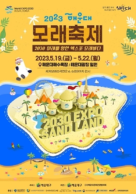 모래를 소재로 한 전국 최대의 친환경 전시회인 2023 해운대 모래축제가 2030 미래를 향한 엑스포 모래바다라는 주제로 개최됩니다. 2030 월드엑스포 유치의 염원을 담은 모래 작품들 꽃 전시회 등 다양한 프로그램이 운영됩니다. 모래로 만든 조각 작품을 감상할 수 있고, 해상 불꽃쇼와 모래 썰매도 즐길 수 있다고 해요. 모래작품과 꽃 전시는 축제가 끝나도 6월 6일까지 운영된다고 하네요.