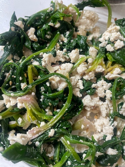 시금치 나물은 나물 요리 중에서 난이도가 낮은 편인 것 같아요. 너무 맛있어서 밥 반찬으로 뚝딱입니다. 저는 두부를 으깨서 넣는 것도 좋아하는데요. 간단히 말씀드리자면, 두부를 으깨서 기름 없는 후라이팬에서 살짝 수분을 날리고 시금치와 함께 섞어서 양념을 해주시면 됩니다.