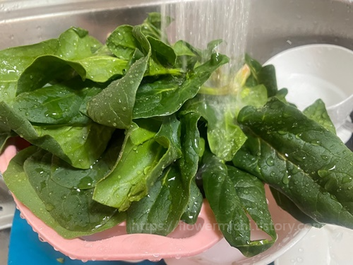 시든 잎이 있으면 떼어주고요. 물에 깨끗이 씻어주세요.