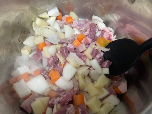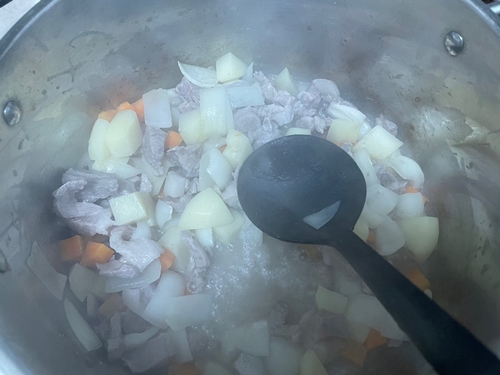 기본적인 당근, 감자, 양파, 고기를 취향대로 적당히 넣어주는데요.