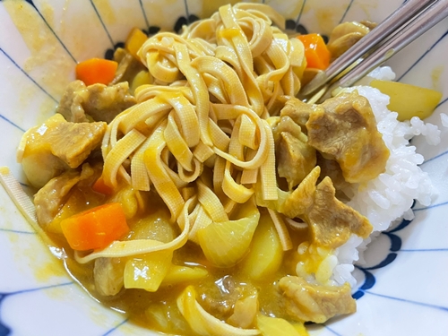 탄수화물 섭취를 줄이기 위해 두부면에 카레를 얹혀서 먹기도 해요.