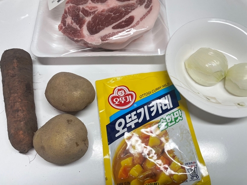 저는 당근1, 감자2, 양파1, 돼지고기로 만들었고, 앞다리를 사용했어요.