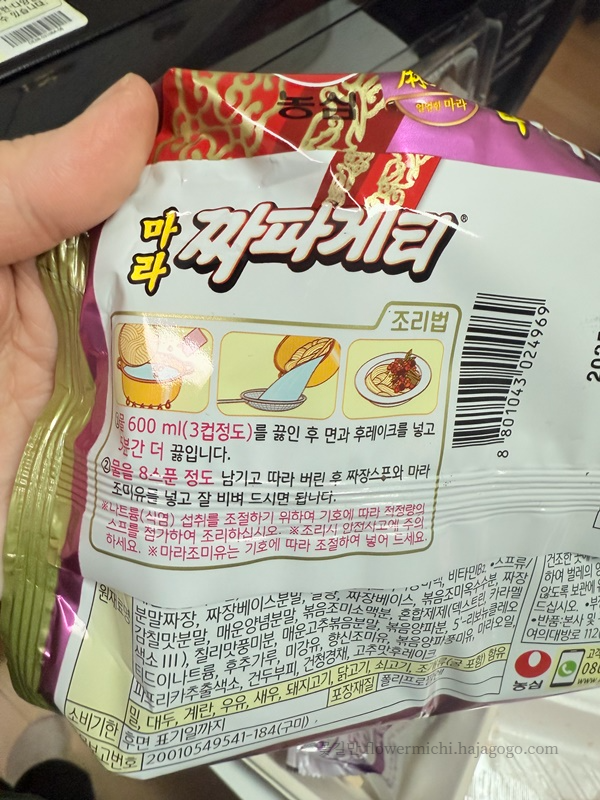 조리 과정도 일반 짜파게티와 비슷합니다. 물을 끓이고, 면과 후레이크를 넣고, 물을 8스푼 남긴 다음 짜장스프와 마라 조미유를 넣고 잘 비벼 먹기!