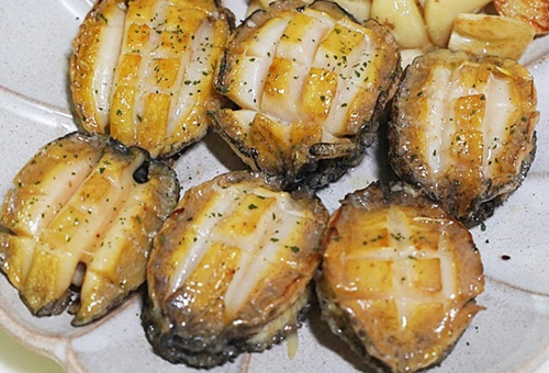 전복 버터구이도 거창한 듯해도 전복만 잘 손질하면 아주 간단히 만들 수 있는데요. 전복은 흐르는 물에 잘 씻으면서 겉을 솔로 살살 문질러서 닦아주면 되는데요. 가끔 잘 모르고 너무 하얗게 닦는 사람도 있는데, 그렇게까지 닦지 않아도 됩니다. 그 뒤에 껍데기와 분리해주는데, 숟가락을 이용하면 편리해요. 그래도 잘 떨어지지 않으면 살짝 데친 후에 떼어내도 됩니다. 전복의 이빨 부분은 칼로 분리해서 버리고, 내장은 따로 잘라낸 다음 같이 구워 먹어도 돼요. 전복 살 위에 십자로 칼집을 내준 뒤에 후라이팬에 넣고 버터와 함께 구워내면 됩니다. 마늘을 함께 구워도 맛이 좋습니다.