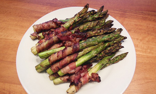 아스파라거스 베이컨 말이도 간단하면서도 맛도 좋고, 보기에도 좋은 요리인데요. 베이컨 대신 차돌박이나 우삼겹으로 해도 무방해요. 요리 과정은 아스파라거스를 베이컨으로 둘둘 말은 다음 후라이팬에 구워주면 됩니다. 에어프라이어에 구워도 됩니다. 취향에 맞게 간장소스나 와사비소스를 곁들이면 손님 초대요리로 잘 어울립니다.
