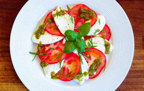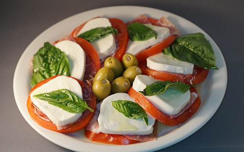 재료: 토마토, 모짜렐라 치즈, 발사믹소스