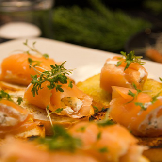 재료: 훈제연어, 각종 채소(양파, 무순, 파프리카 등), 어니언 소스